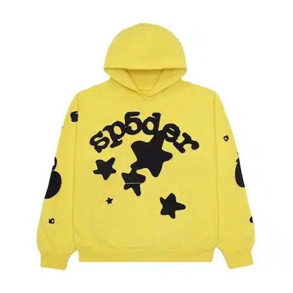 - The Yellow Sp5der Hoodie is a bold and vibrant streetwear piece from the SS21 collection. It features unique spider web-inspired designs and is perfect for making a statement in casual and urban fashion.